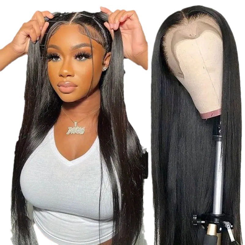 Cross border lace wig black women's mid length straight hair fluffy natural fashion full hair set in stock for Europe and America