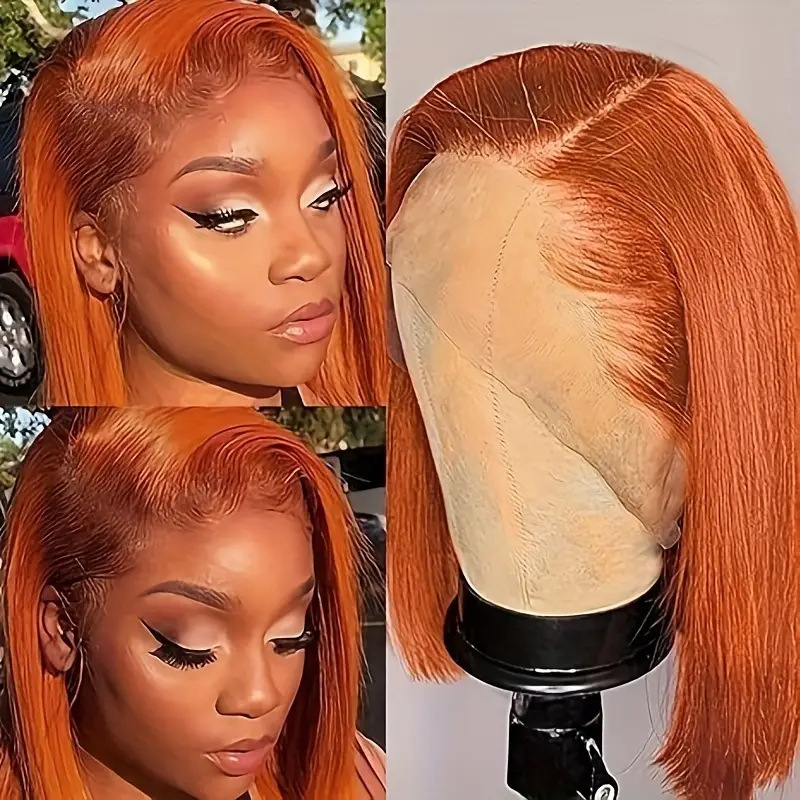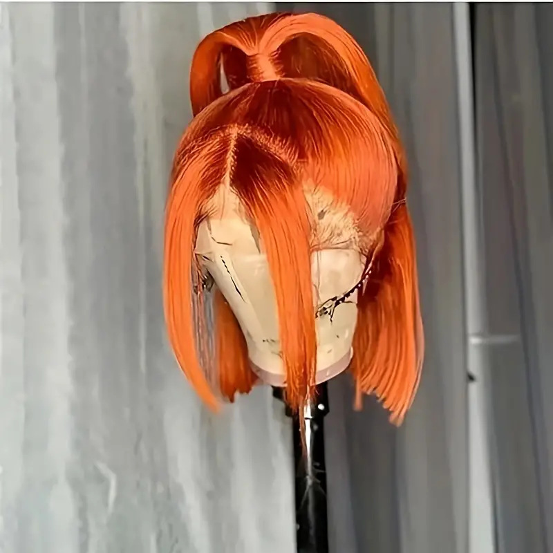 Cross border European and American wig, women's front lace wig, red short hair, buttoned synthetic headband, red lace wig