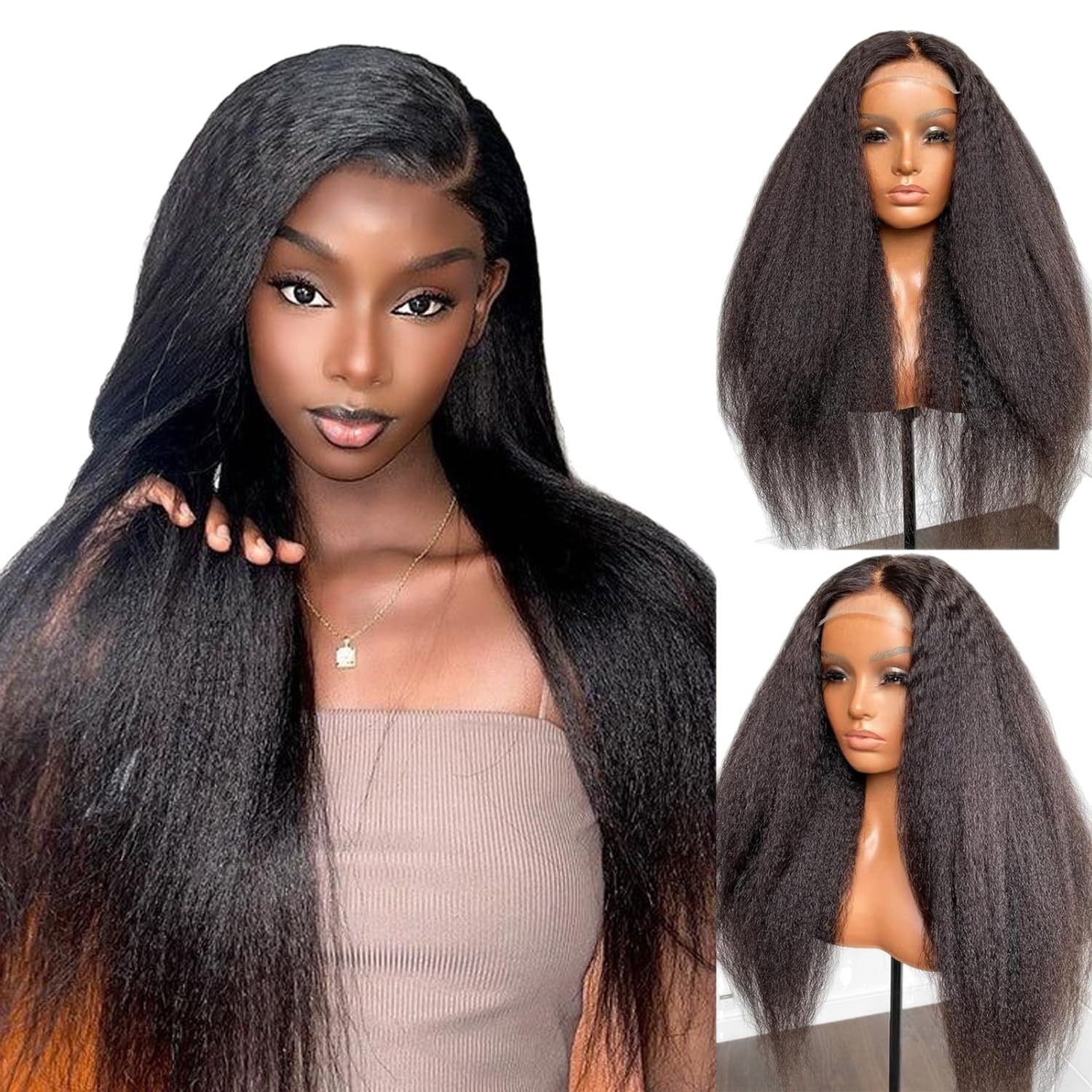 Kinky Straight Wig Headset Female Black Yaki Fluffy Long Hair Human Hair Headset Wigs Wig