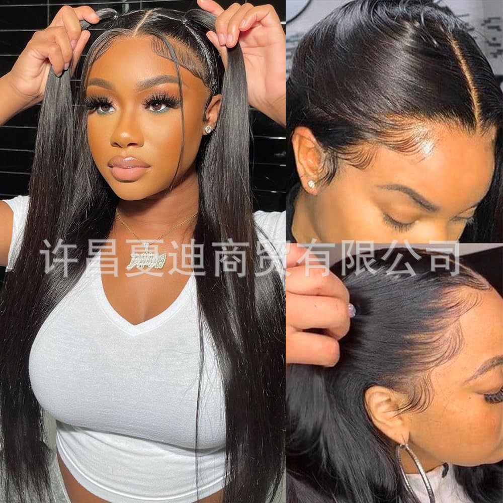 13 * 4 Amazon hot selling European and American full head wig, real human hair, natural black long straight hair, factory direct sales, straight hair