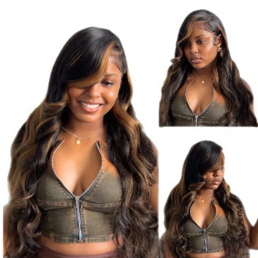 13 * 4lace 1B/30 body wave 2025 new foreign trade real hair wig headband