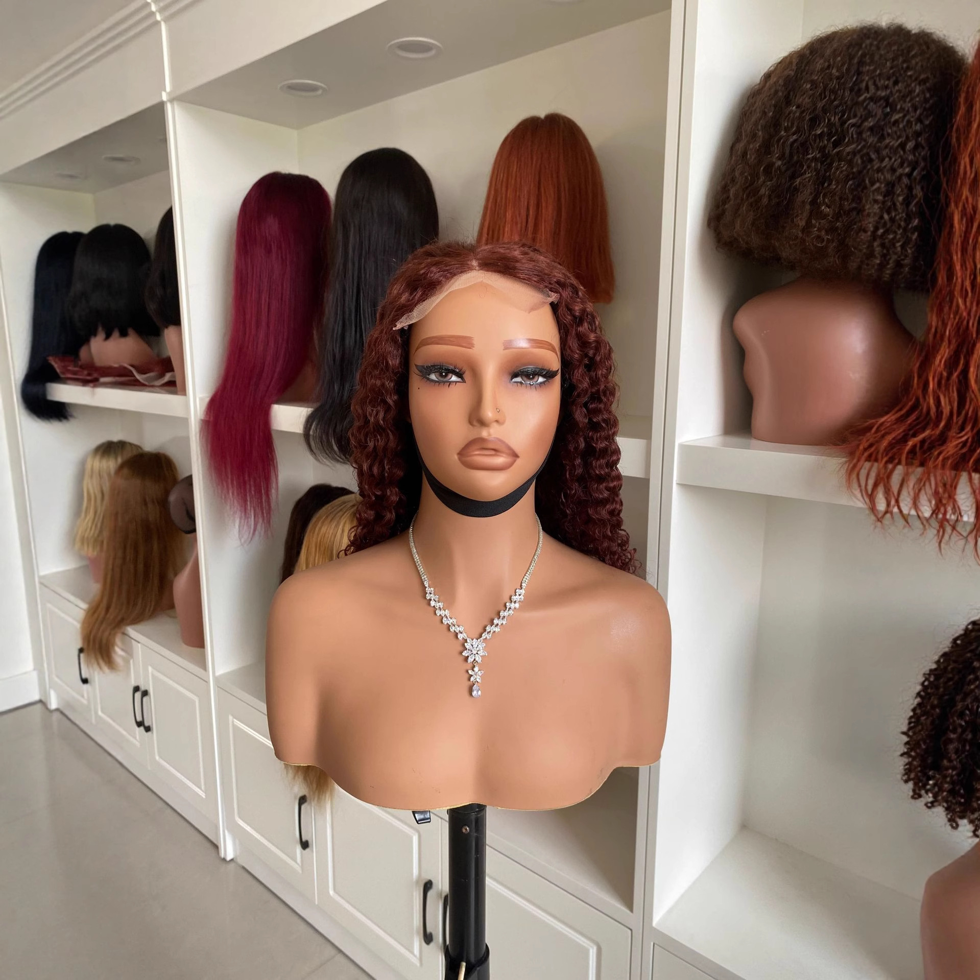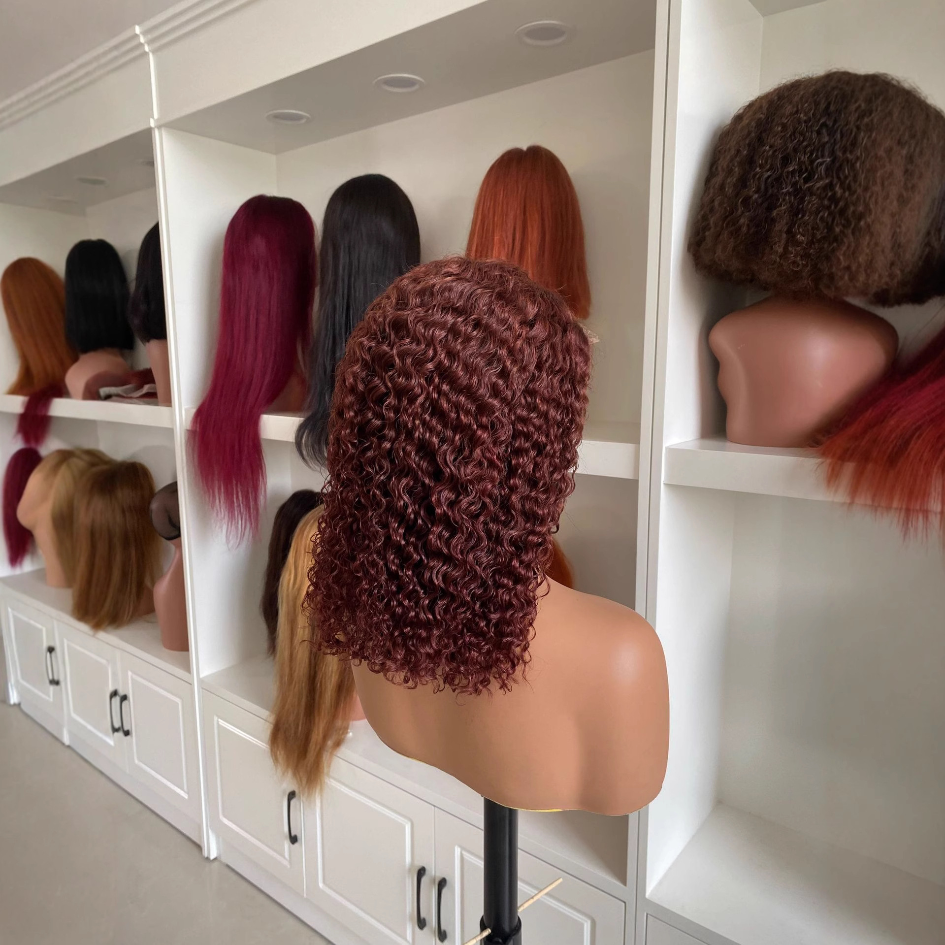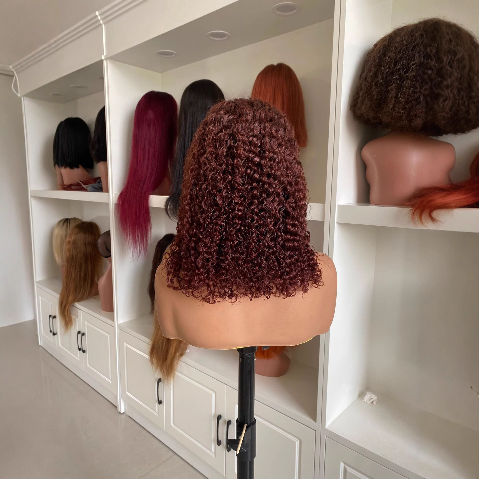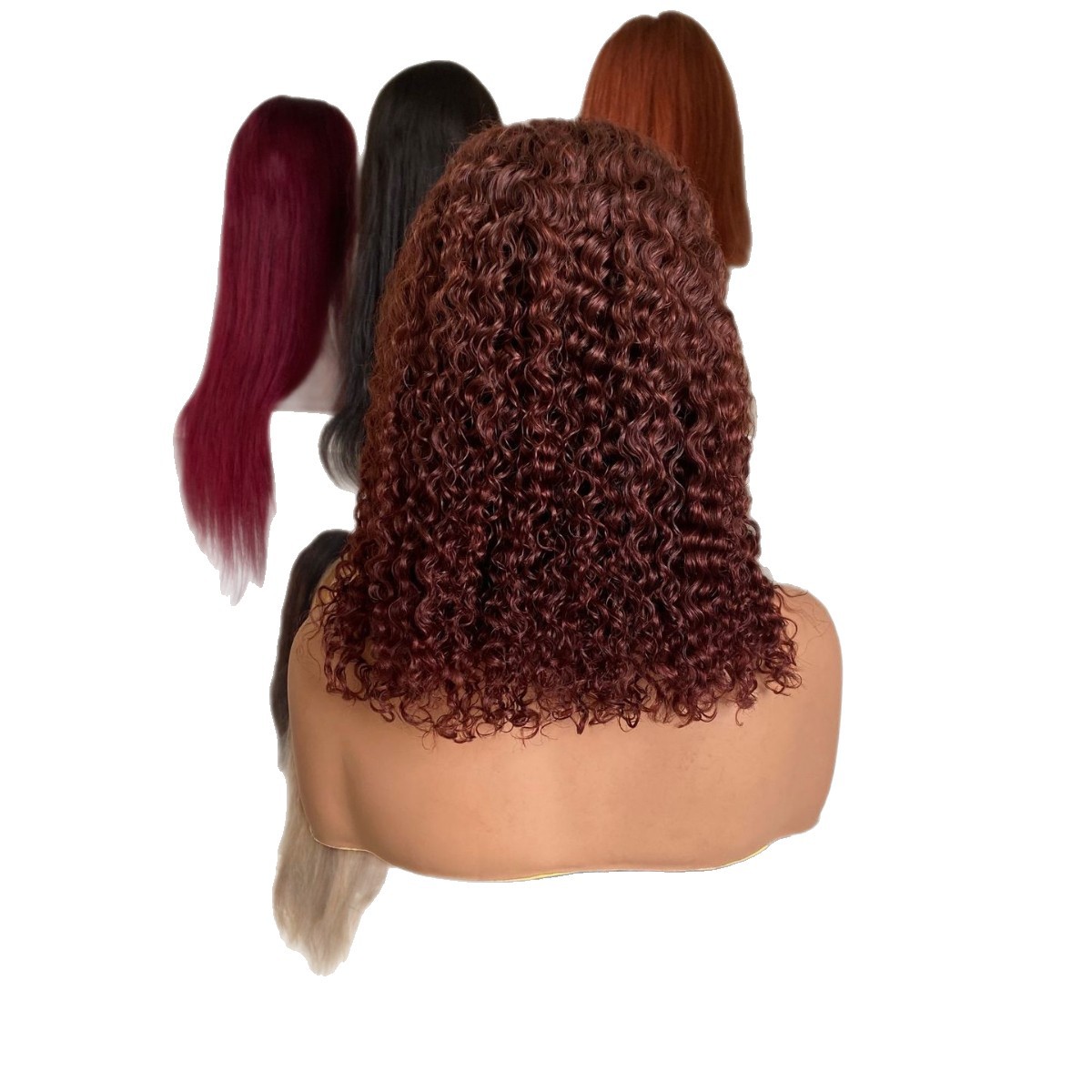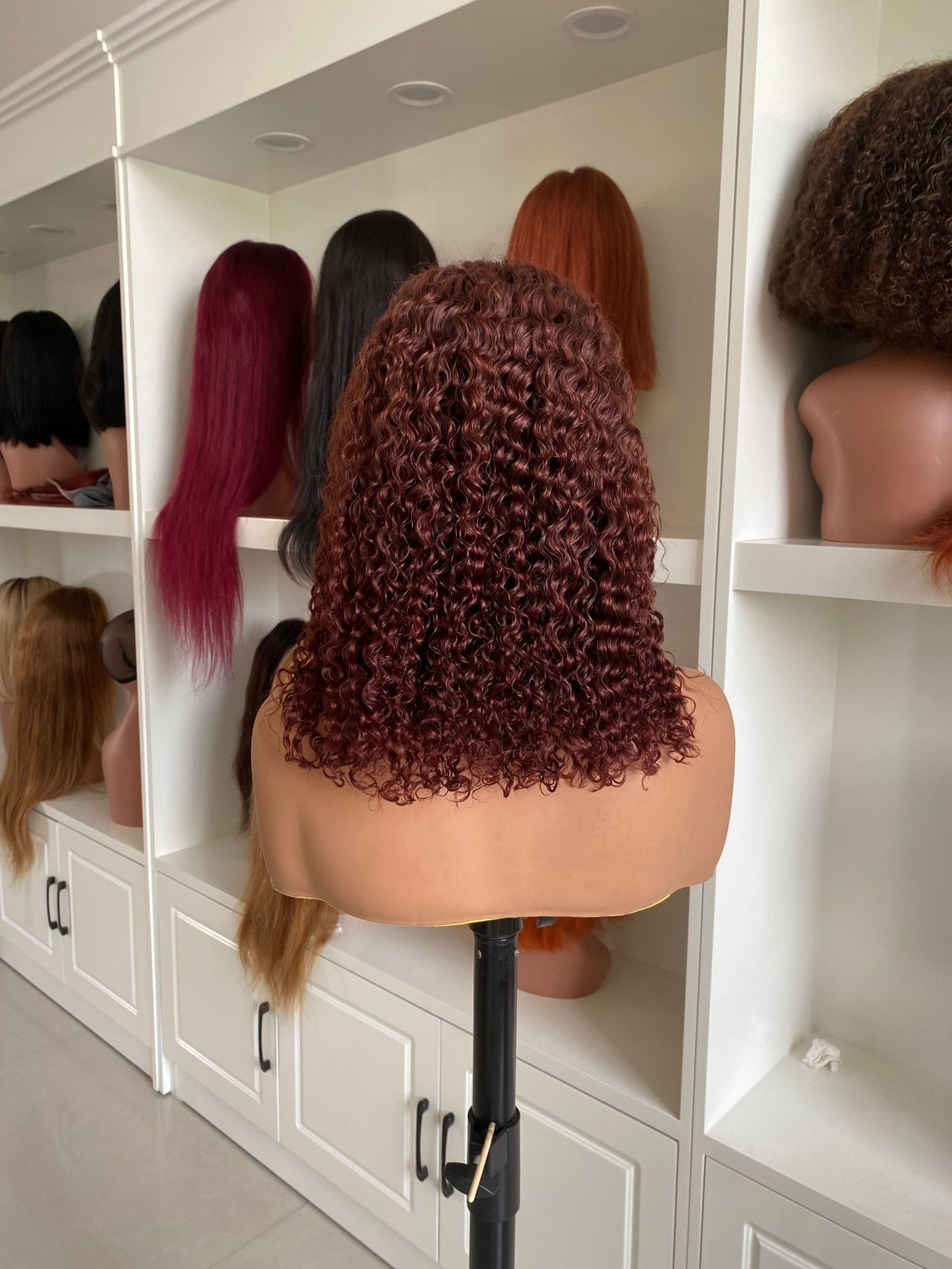 4 * 4 lace non adhesive cap reddish brown color curly real hair wig