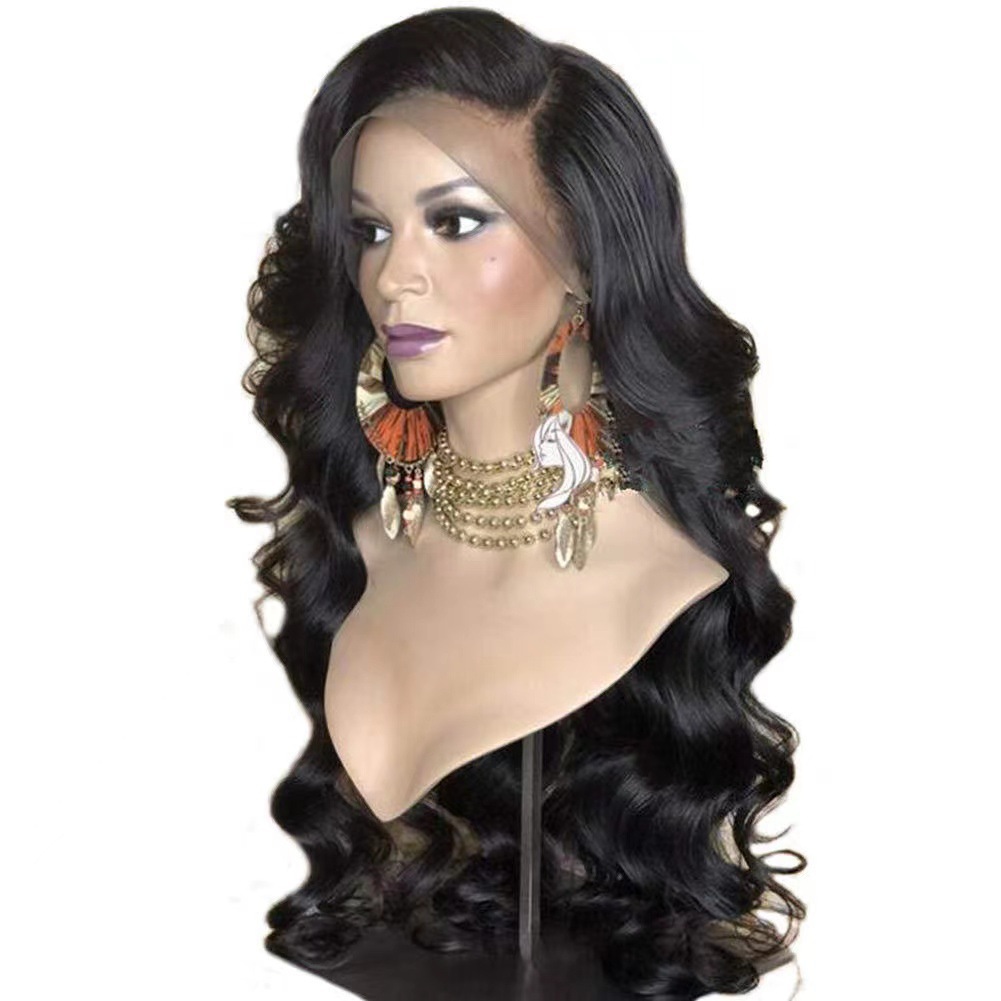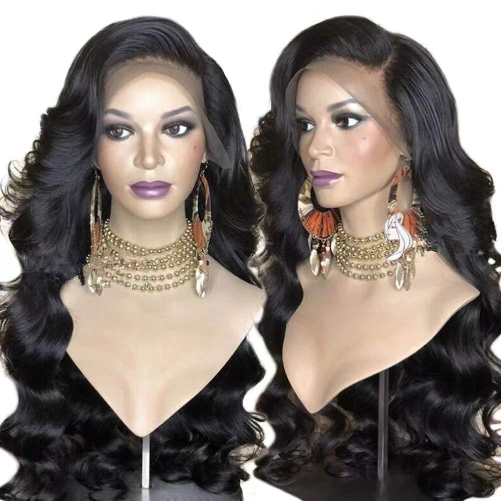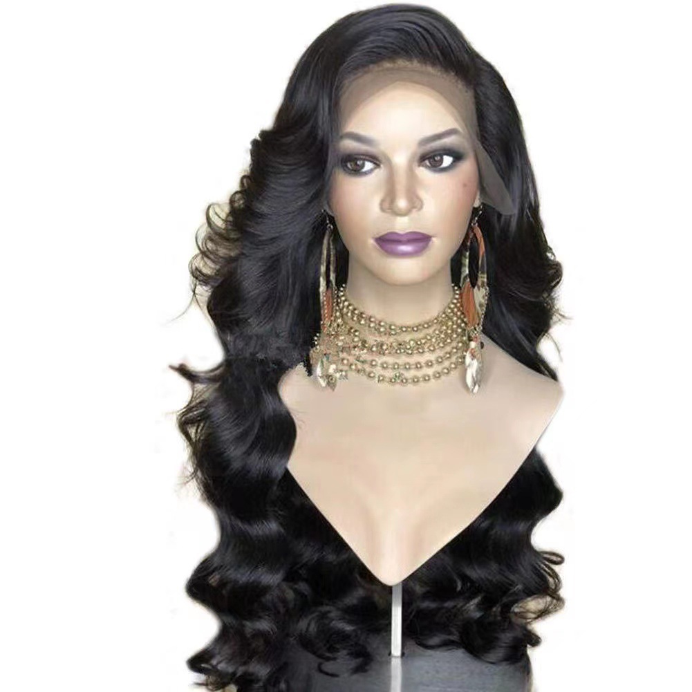 Cross border lace wig, European and American women's long curly hair exudes temperament, black split large wave wig, synthetic headband