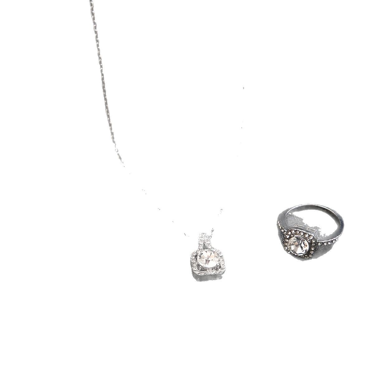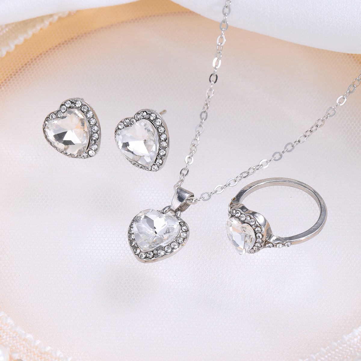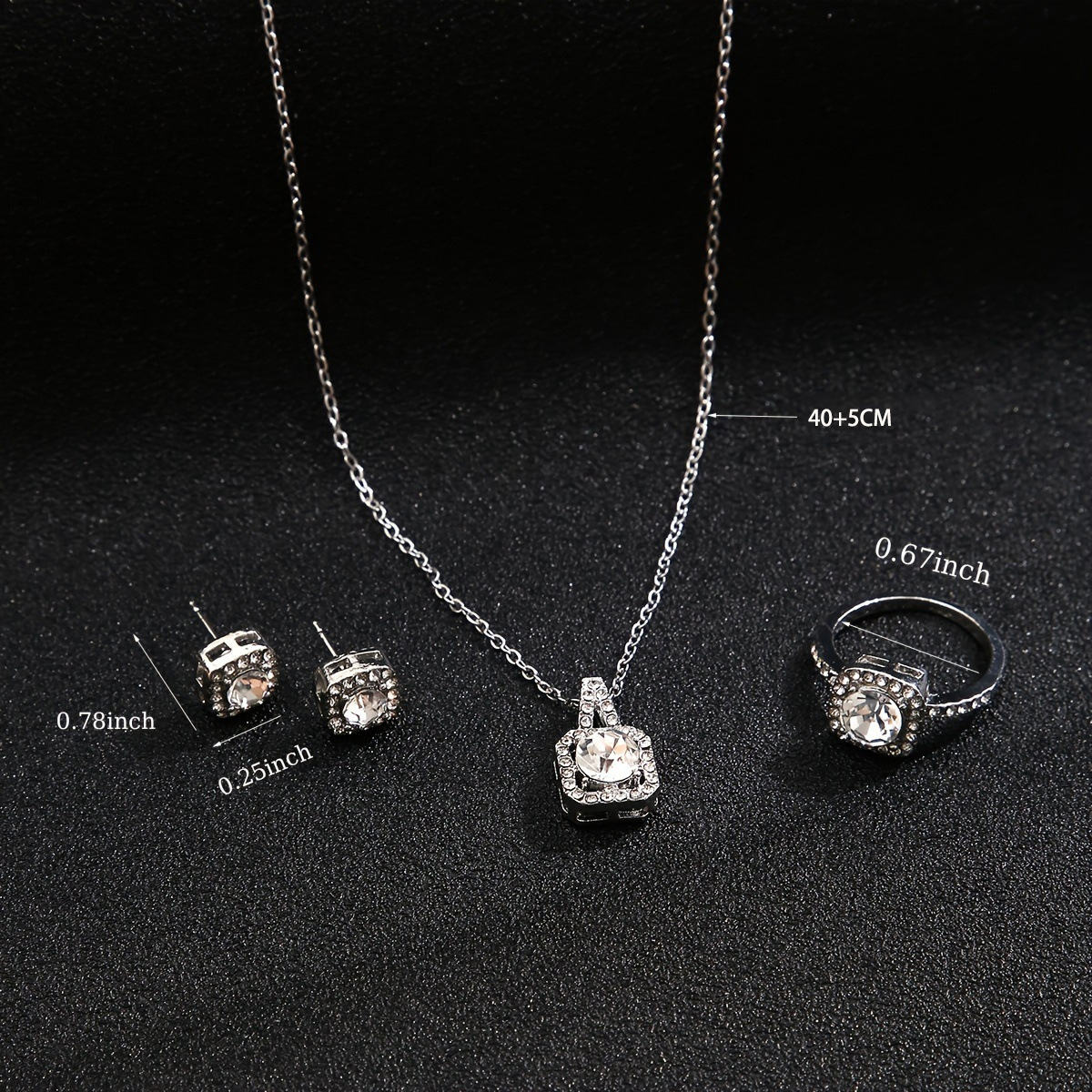Foreign trade hot selling pendant square alloy rhinestone jewelry set fashionable temperament necklace earrings ring three piece set